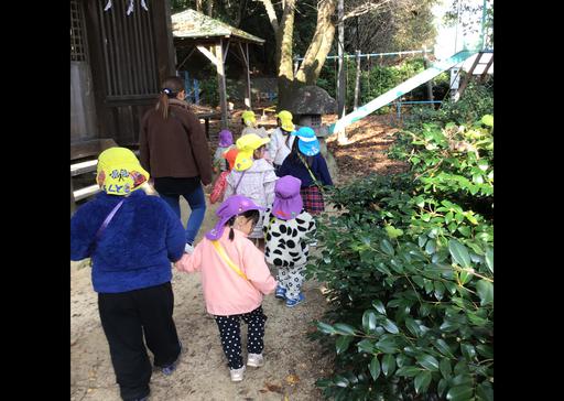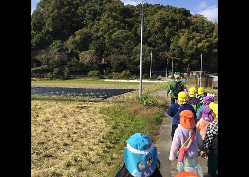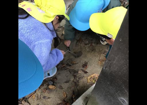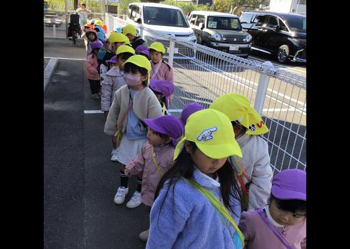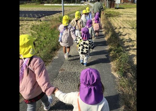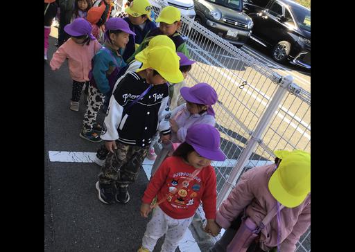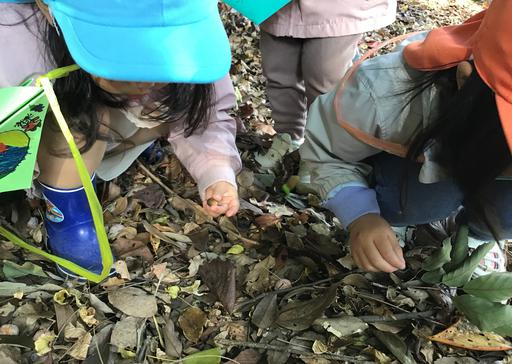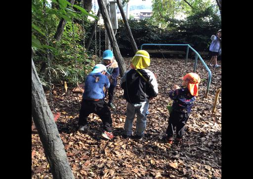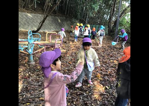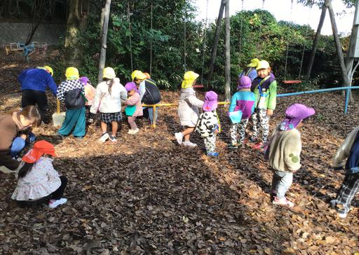 たんぽぽ組(2歳児)からすみれ組(年長)までのみんなで、宝物を入れるバッグを持って、大渕公園まで出かけました。どんなわくわくが見つかるかな?