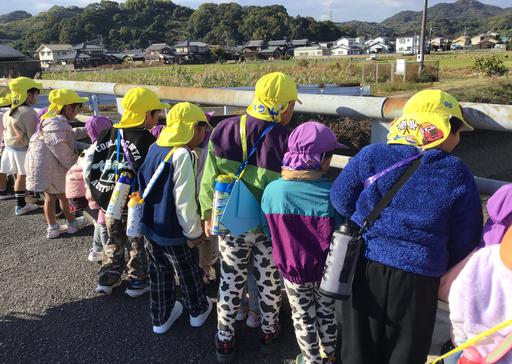 たんぽぽ組(2歳児)からすみれ組(年長)までのみんなで、宝物を入れるバッグを持って、大渕公園まで出かけました。どんなわくわくが見つかるかな?